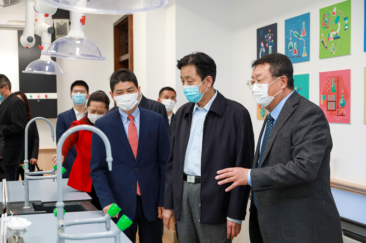 謝廣祥實地調研了新華控股集團旗下合肥新華公學,查看了學校教室、餐廳、宿舍、圖書館等場所,詳細了解了學校的建設、招生及教育教學等工作,認真聽取了企業疫情防控措施落實及復工復學復產情況介紹,充分肯定了學校的國際化定位及良好環境,并對學校的疫情防控措施及返崗復學準備給予了高度評價。