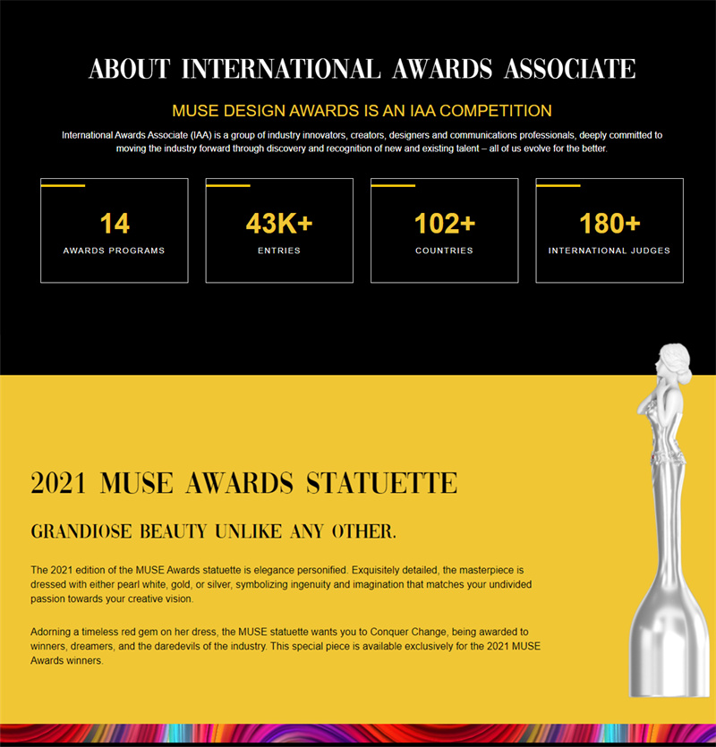 作為始創于美國紐約的專業國際設計競賽,繆斯設計獎(Muse Design Awards)是全球創意設計領域最具國際影響力的獎項之一,嚴格的評審體系和高質量的評判標準每年吸引眾多全球知名品牌與設計師爭相參與。