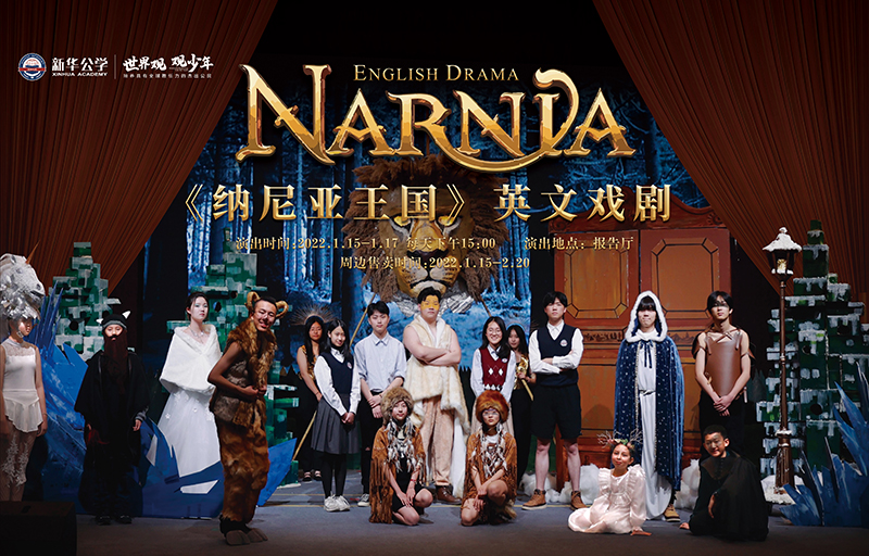 新華公學每年一部大型實景式英語戲劇公演,分別選取了《小王子》和《納尼亞王國》兩個劇目。長達兩個半小時的全英文演出,近百項實景道具的進出,均是由學生完成。項目的主創團隊包含了學生、家長、教師、后勤團隊等學校相關人員。學校對主創團隊進行職責分配,融入編舞、舞臺設計、音樂、總導演等職位分類,其中包括學生表演團隊、舞臺設計團隊、后勤采購團隊、學生家長團隊等多個團隊。