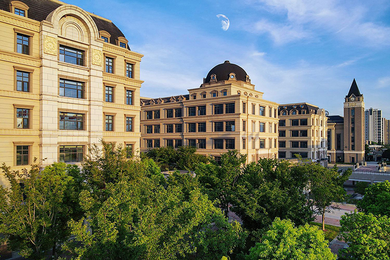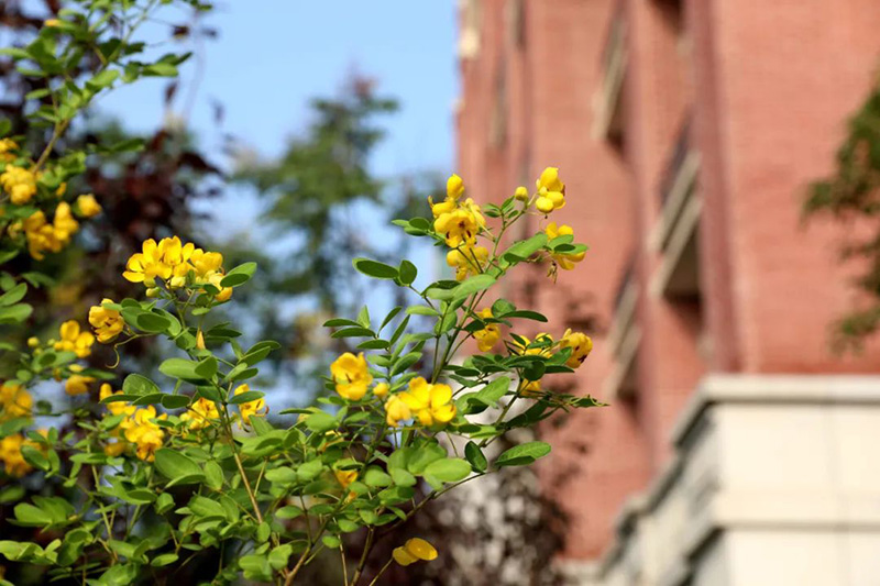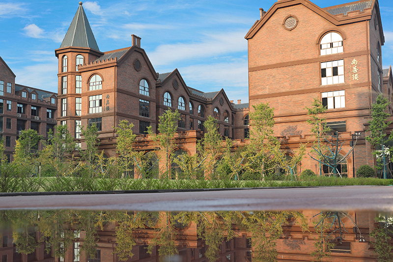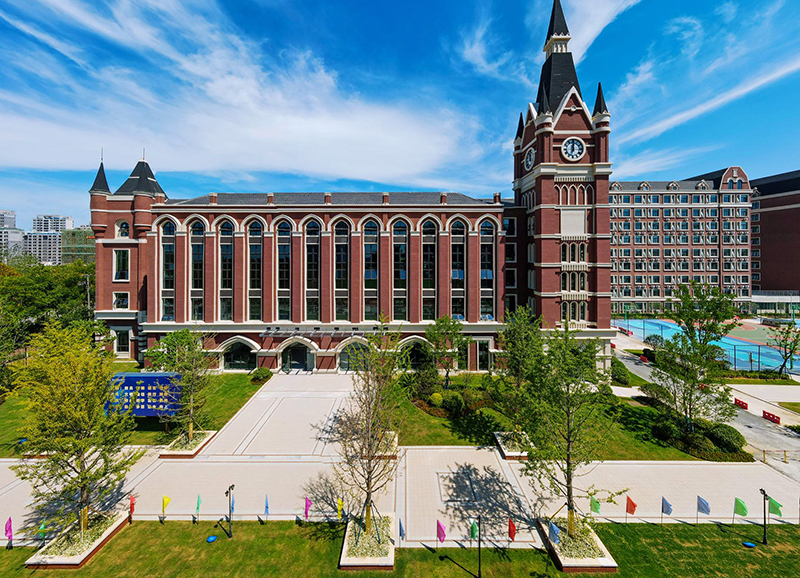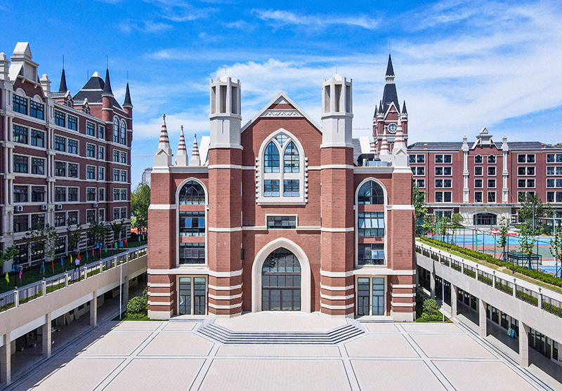 簡(jiǎn)約的英式建筑與尖頂?shù)母呗栫姌牵e(cuò)落有致地散落在校園里,構(gòu)成新華藝術(shù)高級(jí)中學(xué)的獨(dú)特風(fēng)景線。