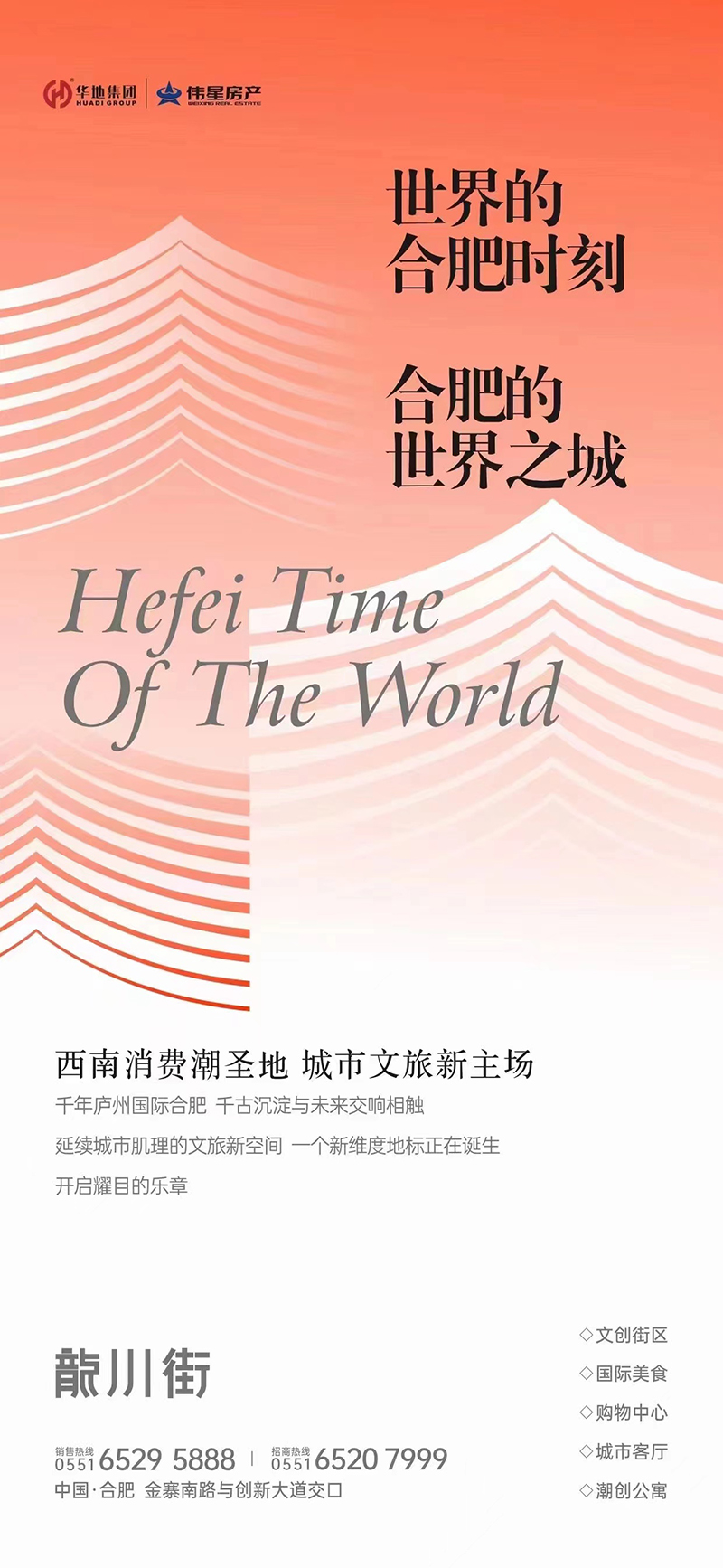 匠心與雄心,在偉大的時代相逢。華地集團聯袂偉星房產,讀懂合肥立定風云的雄心,擇址政務·高新·濱湖三區交匯之地,以“西南消費潮圣地 城市文旅新主場”為定位,打造18萬方未來理想都市輕度假文化商業先鋒之地——龍川街。