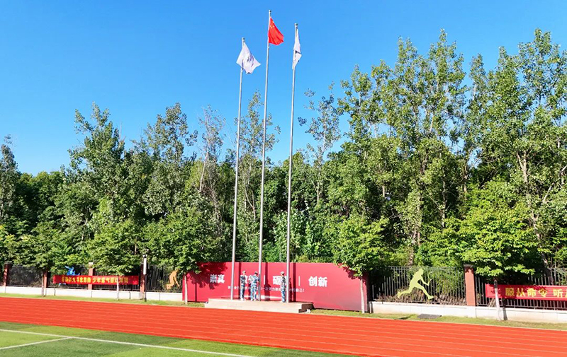 莊嚴肅穆間,顧銳總教官向校長請示開旗。激昂的國歌驟然奏響,全體師生肅立凝視,五星紅旗迎著晨風冉冉升起,鮮紅的旗幟在晴空下舒展,拳拳愛國心在每個人胸中激蕩,化作無聲的敬意與信仰。