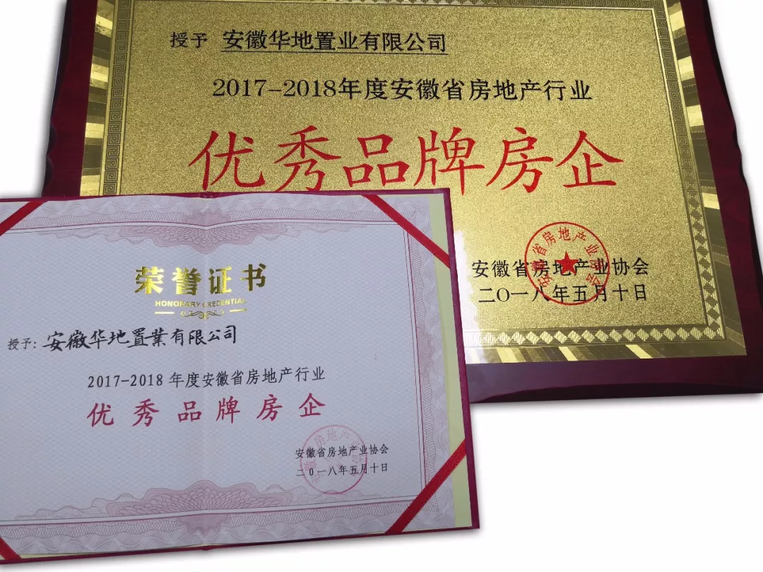 華地集團旗下著名品牌——華地置業,憑借深厚的品牌底蘊、優異的市場口碑以及出色的綜合運營能力,榮獲“2017—2018年度安徽省房地產行業優秀品牌房企”。金鼎閃亮的光輝,于華地而言是肯定,更是華地集團堅守匠心,矢志踐行人居使命的動力。