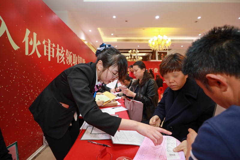 交付現場更是分區明確,動線流暢。從權證文件簽署、財務手續辦理、物業服務辦理、交接鑰匙、驗房確認,業主們在現場工作人員的引導下有條不紊的辦理各項手續,讓業主可以安心暢享即將到來的幸福生活。