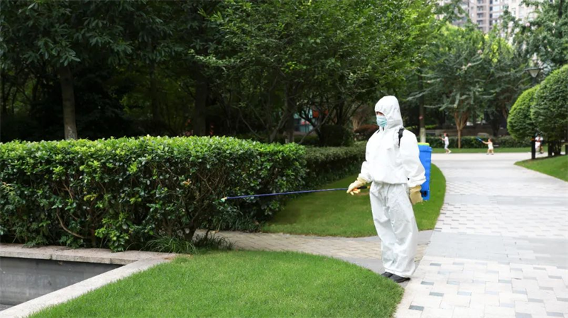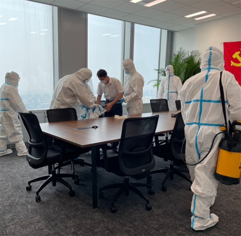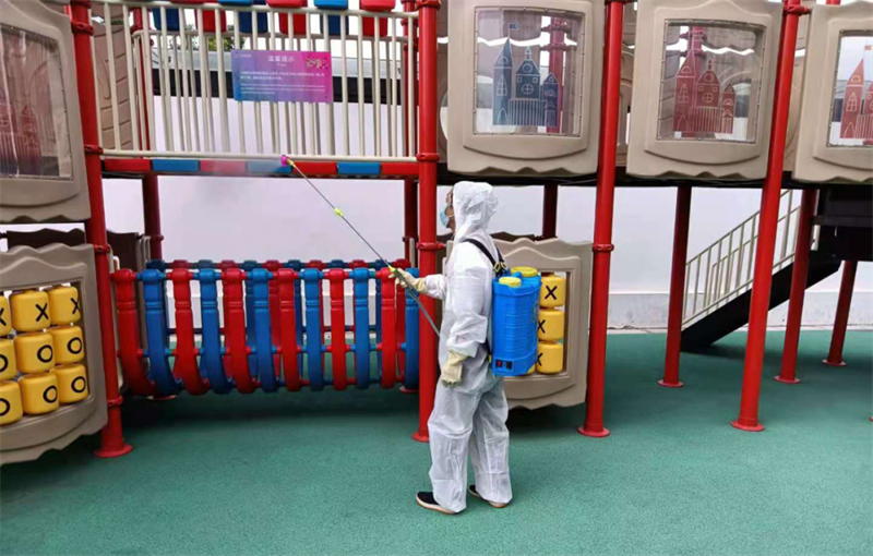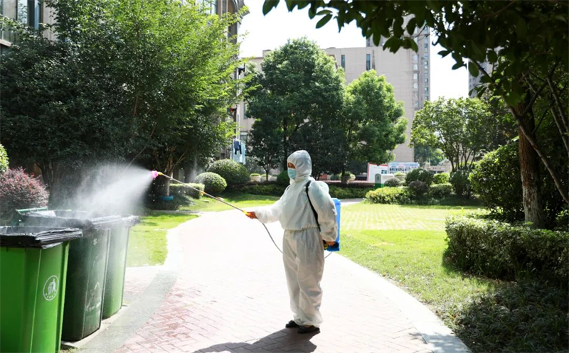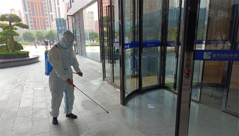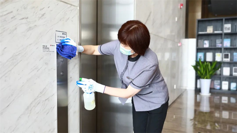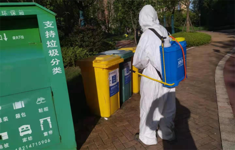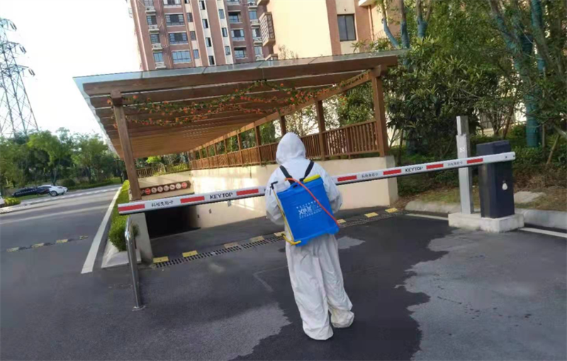 針對園區、案場、寫字樓、學校等多個項目,嚴格遵循防疫工作標準,對電梯、樓道、垃圾桶、車庫、出入口、兒童設施等公共區域堅持每日進行全覆蓋、高頻次消毒,對商寫、學校等重點區域一天不低于兩次消毒作業,不放過任何一個衛生防疫死角。