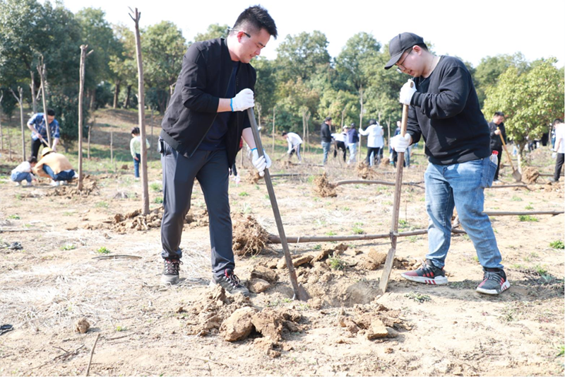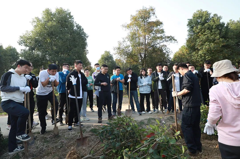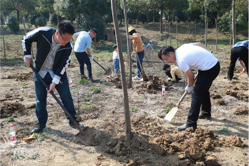 植一株綠色,溢一片春光。格林生態(tài)總部員工一大早就集合在苗圃,他們希望通過此次植樹活動為苗圃增添“綠色新衣”。在專業(yè)人員的指導(dǎo)下,大家揮鍬鏟土、扶樹正苗、澆水培土,栽下一棵棵樹苗。三五人一組,分工合作、默契配合,男生挖坑、鏟土,女生扶苗,填埋,到處都是勤勞忙碌的身影。