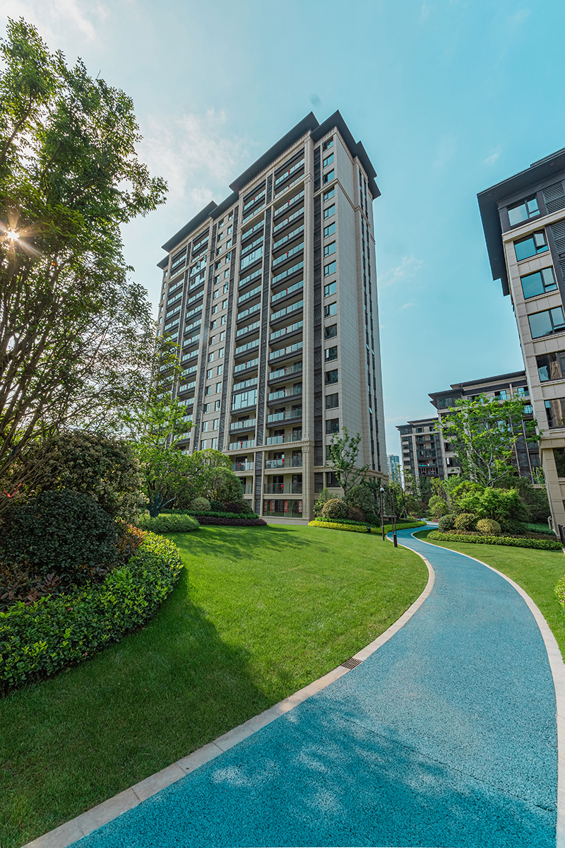 華地堅持以境造園,繪就詩意人生。景觀中軸由北至南,一脈貫穿,中軸線上匯聚多種珍貴樹種,呈四季斑斕,花香滿徑,樹影錯落,猶如一幅展開的畫卷,人于畫中游。