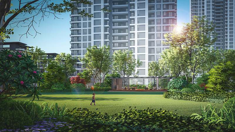 一走進華地公元,就讓我眼前一亮,景觀中軸由北至南,一脈貫穿,整體綠化園林層層鋪陳,讓人意猶未盡。