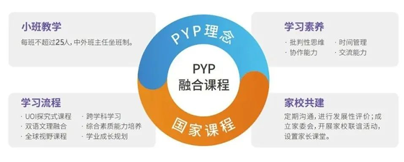 在完成國家規定課程的基礎上,強化語文、數學、歷史、政治等課程教學,融合課程由外教進行授課,包括英語文學、數學、戲劇和科學等主修課程。