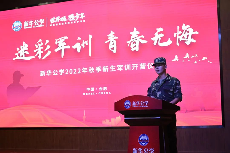 隨后新華公學(xué)總校長(zhǎng)秦新春給同學(xué)們帶來了殷切的期望和囑托。他表示,軍訓(xùn)是邁入人生新階段的第一課。因此,通過軍訓(xùn)的磨練后,他希望同學(xué)們能夠在生活上自立、學(xué)習(xí)上自主、健身上自覺、行為上自律、精神上自強(qiáng),樹立良好的學(xué)習(xí)和生活觀。