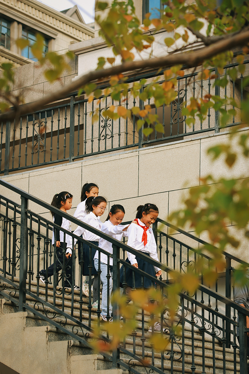 橙光流淌在朝氣蓬勃的操場上